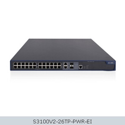 * S3100V2-26TP-PWR-EI:24個10/100Base-TX以太網(wǎng)端口(PoE),2個10/100/1000Base-T以太網(wǎng)端口和2個復(fù)用的100/1000Base-X SFP端口;